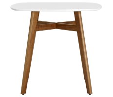 Оригинальный стол в современном стиле станет прекрасным дополнением кухни или обеденной зоны. Квадратная столешница выполнена из МДФ, окрашенного в белый цвет. Ножки стола изготовлены из массива бука.