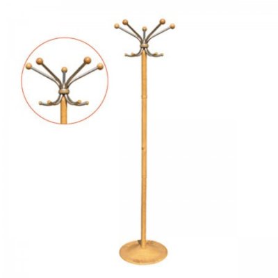 Вешалка напольная выполнена из оцинкованной стали с полимерным покрытием, имитирующем текстуру дерева. Внешне вешалка выглядит будто сделана из натурального дерева. Крючки выполнены из хромированной трубы 16 мм. Декоративные шары выполнены из натурально дерева (бук). Поставляется в 2-х цветовых вариантах: бук и вишня. Идеально вписывается в интерьер современного офиса оснащенного классической мебелью. Эта вешалка подчеркнет высокий статус Вашей фирмы.