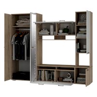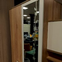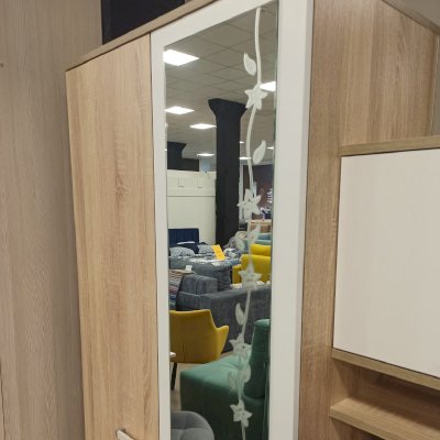 Компактный гарнитур «Лукас» – это функциональная стилизованная модель с простыми геометрическими формами и множеством полезного пространства. Контрастное сочетание фасадов белого цвета с древесной фактурой дуб сонома, а также отделка зеркалами станут ярким акцентом любого интерьера.