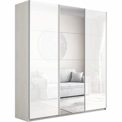 Шкаф-купе 3-х дверный Прайм Белое стекло/Зеркало/Белое стекло 1800х2300х570 мм Белый снег