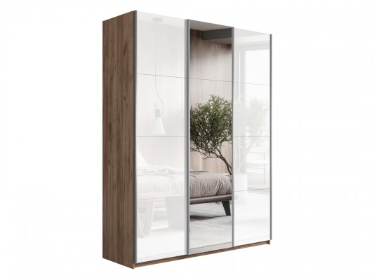 Шкаф-купе 3-х дверный Прайм Белое стекло/Зеркало/Белое стекло 1800х2300х570 мм Крафт табачный