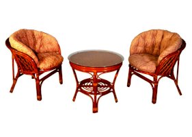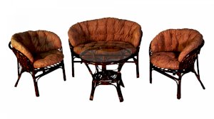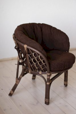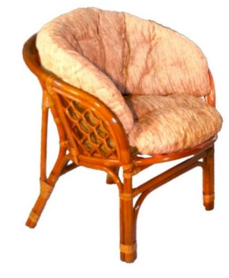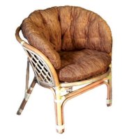 Удобное кресло из натурального ротанга с мягкой подушкой.