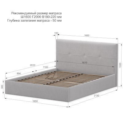Углубление под матрас: 5 см