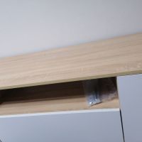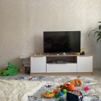Хорошая тумбочка под телевизор. Выглядит отлично, материал надежный, не хлипкая. Комплектность полная - винтиков в избытке. Собрали быстро