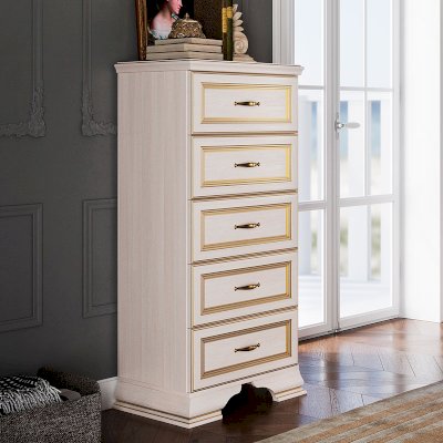 Если вам нужно купить большой комод в современном классическом стиле для гостиной, спальни или прихожей присмотритесь к представленной мебели. В ней вам доступно 5 выдвижных ящиков для хранения всевозможных аксессуаров, белья или постельных принадлежностей. Модуль очень вместителен и функционален.