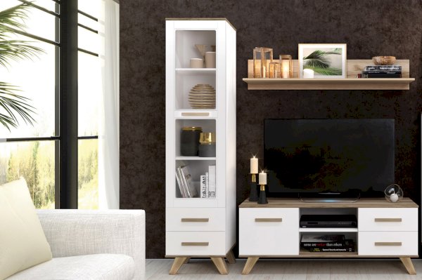 Скандинавский стиль в мебели — это строгие геометрические формы и сочетание натуральных оттенков камня, песка, натуральной древесины, белого цвета. Все это вы найдете в узкой витрине «Вега Скандинавия». Если вам нужно купить стеклянную витрину, обратите внимание на такие качества как: дизайн, вместительность, функциональность — наличие ящиков и полочек, и надёжность применяемых материалов и фурнитуры.