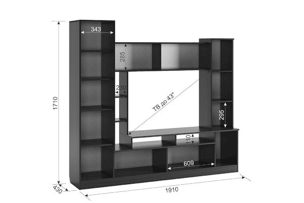 Мини-стенка «Токио»- находка для Вашей гостиной! Благодаря наличию большого количества открытых и закрытых полок, она заменит Вам полноценную стенку. Предусмотрено место для ТВ диагональю до 43 дюймов. Принтерный рисунок устойчив к воздействию ультрафиолета и истиранию. Качественная фурнитура порадует Вас долговечностью.
