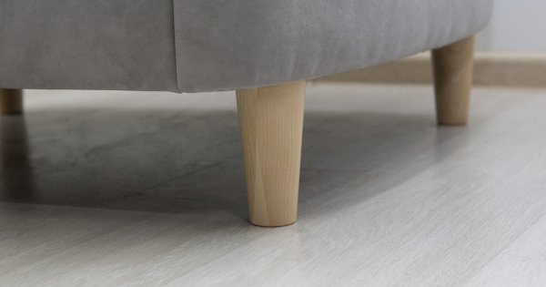 Комплект состоит из прямого и углового диванов, кресла для отдыха и пуфа.
