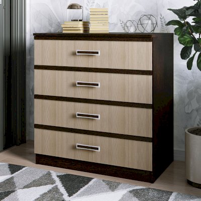Комод является частью модульной коллекции Сакура. Его можно поставить как в прихожую, так и в спальню, детскую или гостиную. Классический комод Сакура состоит из четырех выдвижных ящиков, каждый из которых имеет светлый фасад и эргономичную ручку с хромированной отделкой.